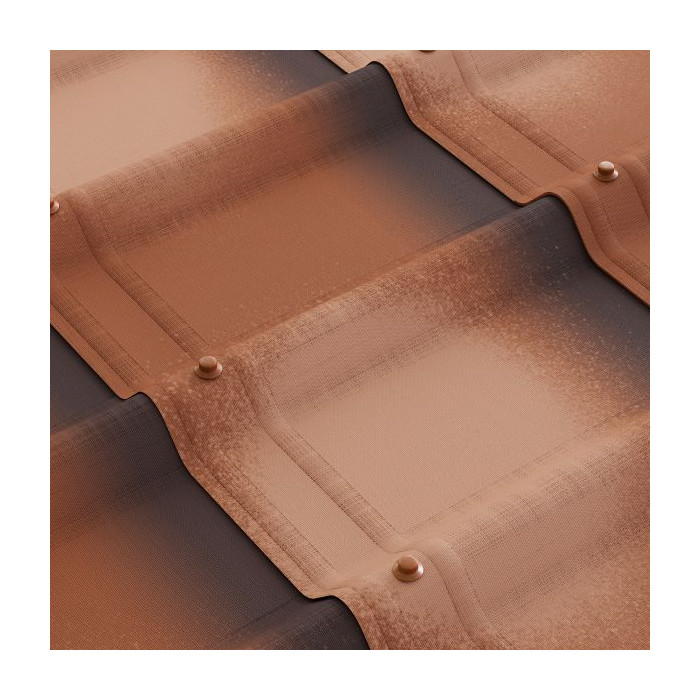Черепица Ондувилла Фиорентино окрашена в 4 слоя: грунтовочная окраска плюс три декоративных слоя, которые защищают кровлю от выгорания.