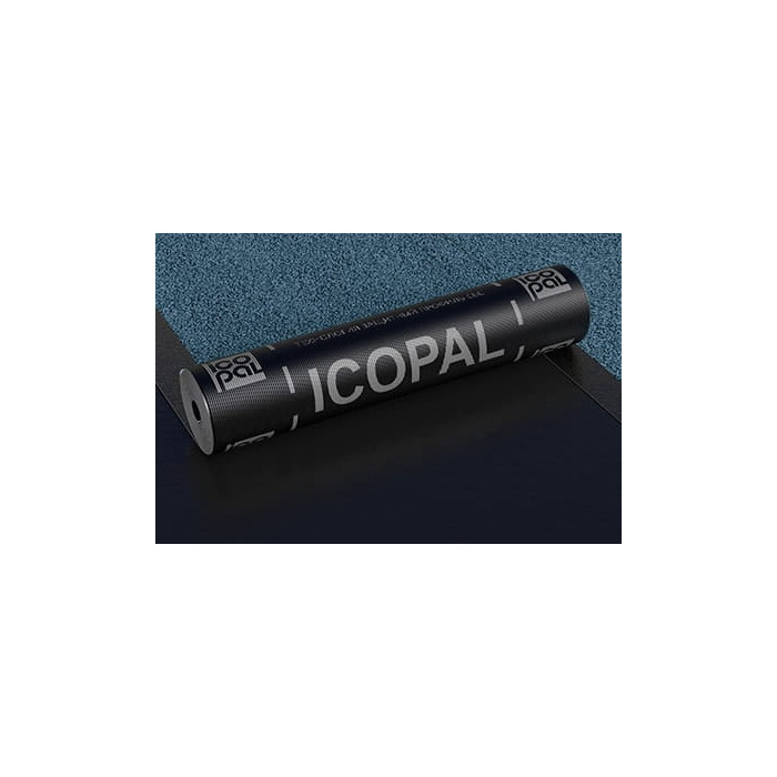 Рулонный битумно-полимерный СБС-модифицированный материал на нетканой основе из высокопрочного полиэстера с крупнозернистой посыпкой синего цвета на верхней стороне полотна.