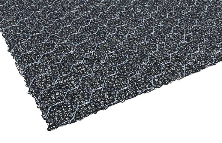 KMat RF Metal 68 G – геомат, армированный металлической сеткой двойного кручения. Противоэрозионный геомат, изготовленный из экструдированных полипропиленовых нитей, переплетенных и термоскрепленных между собой, армированный металлической сеткой двойного кручения. Применяется для защиты от камнепада в горной местности и в составе конструкций для предотвращения оползней.