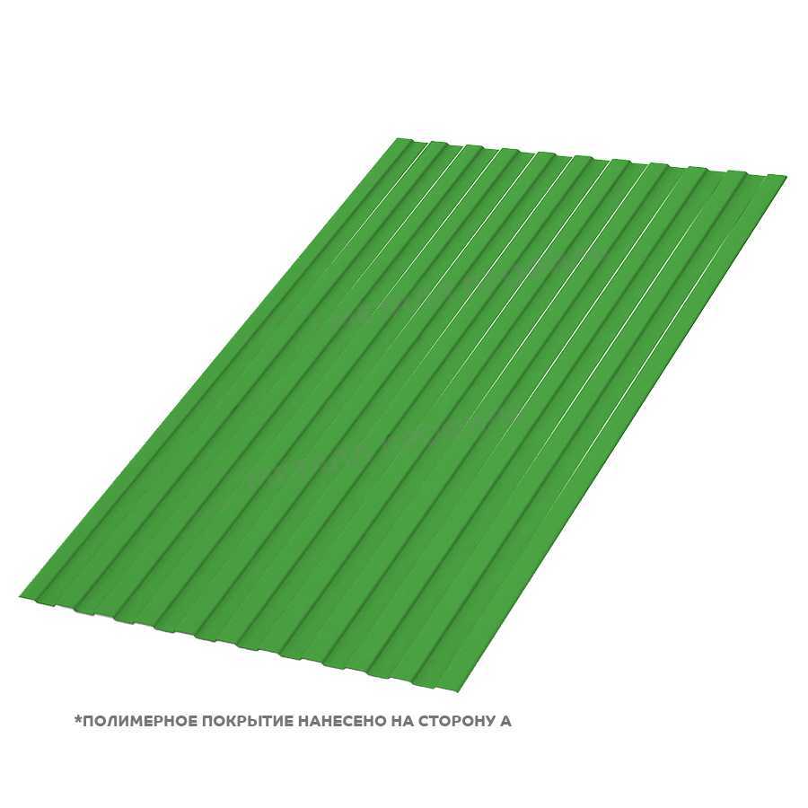 Профилированный лист С-8x1150-A (ПЭ-01-6018-0,5) — популярный материал в Москве для монтажа забора. Представляет собой металлический оцинкованный лист с покрытием. Толщина металла с цинковым и декоративно-защитным слоем — 0.5 мм.Проходя процедуру холодного проката, металл приобретает рисунок из повторяющихся волн. Такая форма придает профилю несущую способность.