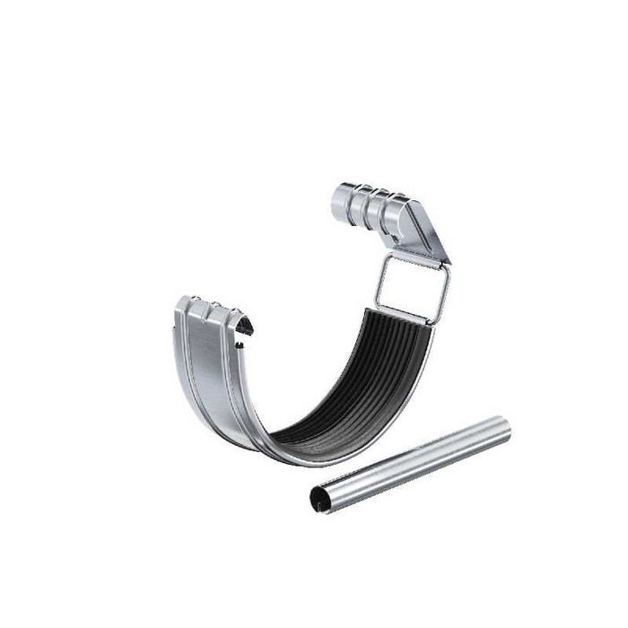 Соединитель желоба в комплекте предназначен для последовательного соединения двух желобов, либо желоба и угла (внешнего или внутреннего). Предотвращает протекание воды в местах соединений и является компенсатором линейного расширения металла. Имеет полноценный резиновый профиль, благодаря которому не требует мер по дополнительной герметизации. Наличие универсального замка (пряжки) позволяет использовать его многократно и исключает возможности его поломки при частом открытии или закрытии. Наличие ребра жесткости придает детали дополнительную прочность. Соединитель желоба поставляется в комплекте с элементом жесткости, который представляет собой трубку из оцинкованной стали, либо из меди, толщиной 0,7 мм, которая по своей конструкции повторяет завиток желоба.С помощью элемента жесткости на 50% увеличивается жесткость конструкции в местах соединения желобов, что упрощает работу по расчету и установке водосточной системы, а также не требуется установка дополнительных крюков в местах стыка желобов (стыковку желобов можно производить в любом месте, вне зависимости от шага крюков).