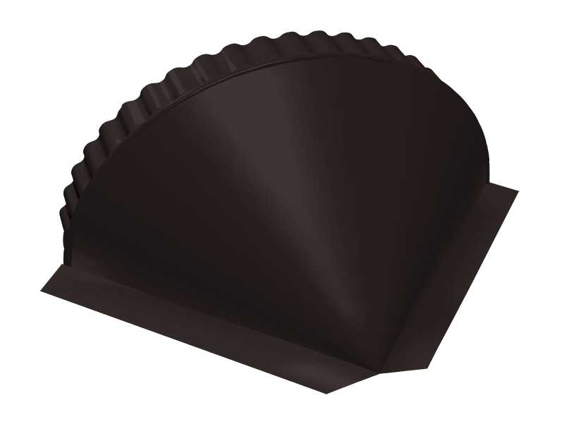 При монтаже полукруглого конька для эстетики необходимы заглушки на торцах и сопряжениях конька и хребта (торцевая) и окончаниях хребтов (конусная).